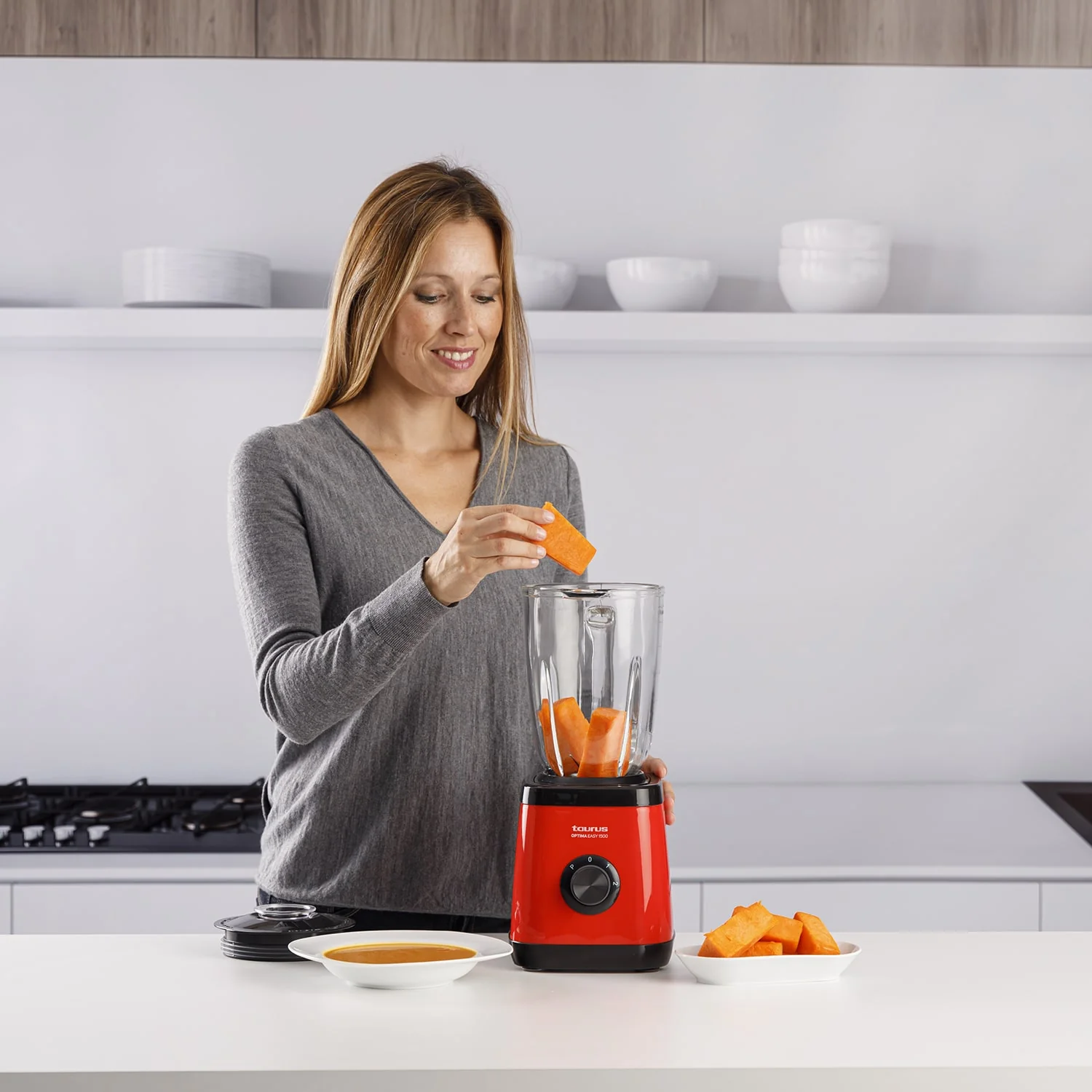 La batidora de vaso Optima Easy 1500 de Taurus combina 1500W de potencia con una jarra de cristal graduada de 1,5L. Sus cuchillas desmontables de acero inoxidable son ideales para picar hielo y preparar batidos o smoothies. Con 2 velocidades, función Turbo y un sistema de seguridad que asegura un uso confiable, es práctica y eficiente. Las piezas aptas para lavavajillas y los pies antideslizantes hacen de esta batidora una opción ideal para tu cocina diaria.